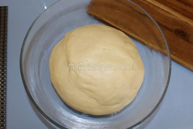 3.将面团盖上保鲜膜,放温暖处发酵至2-2.2倍大