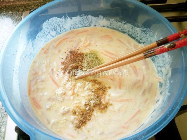 5.加入调料,鸡精,葱姜蒜粉,搅拌均匀可以做了。