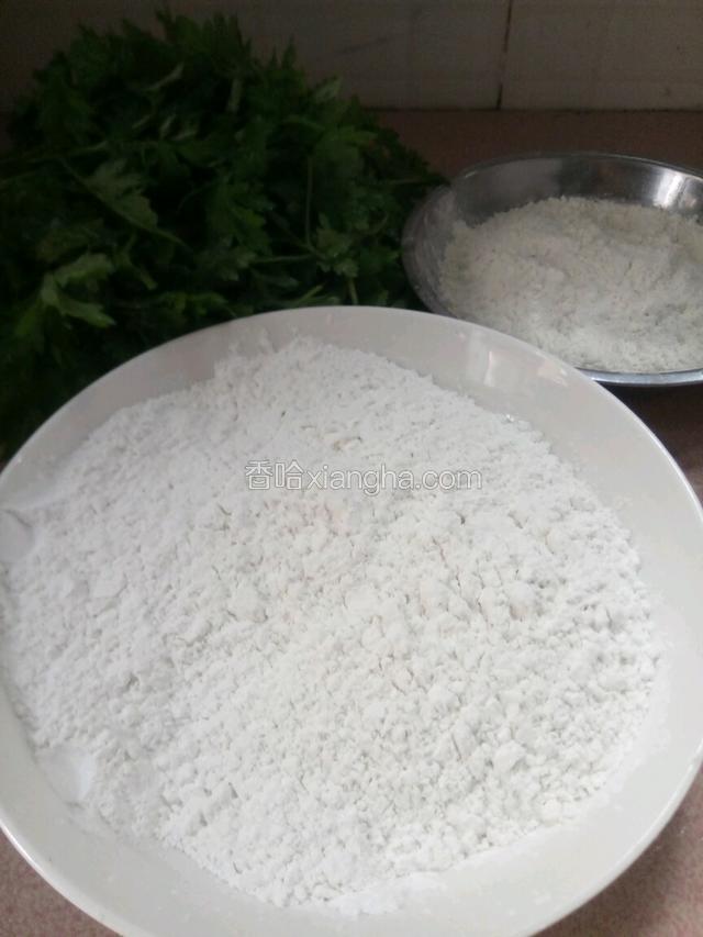 4.把糯米粉、面粉和煮烂的艾叶拌在一起搅成絮状,加少许白糖,如果觉得干可以加少许水,不觉得干可不加