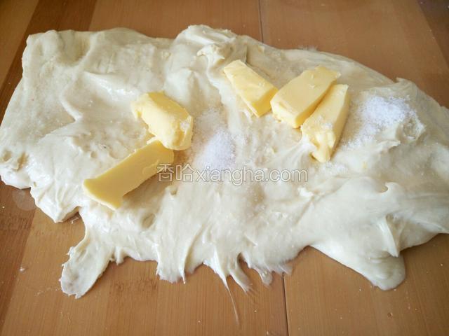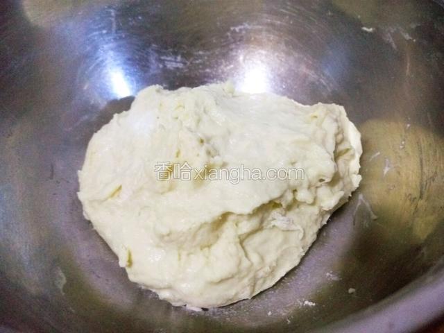 2.因为太少又没用面包机和面 先在盆里放入自制酸奶和糖 酵母 搅拌均匀