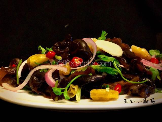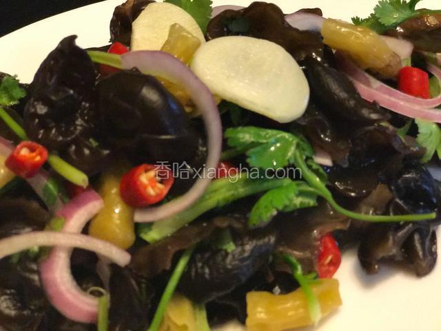 6.取一个干净容器将晾凉的木耳和所有辅助食材再加入白砂糖拌匀,盖好盖子密封放入冰箱冻2小时左右