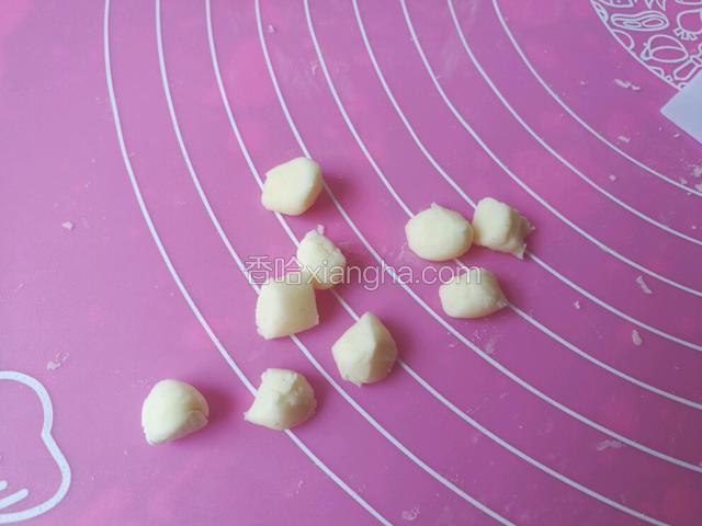 6.切成小丁,比黄豆粒稍微大点。