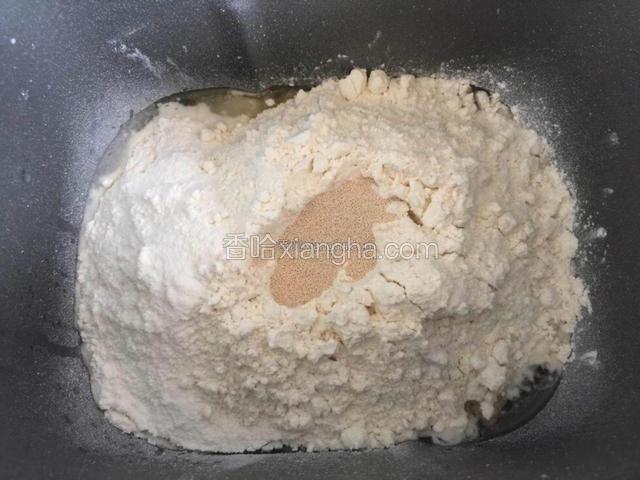2.所有材料按照先液体后粉类的顺序放入面包机中揉面30分钟至扩展阶段。