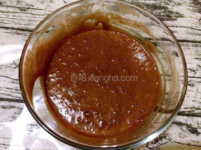 6.把巧克力液边倒入蛋液中边搅拌均匀