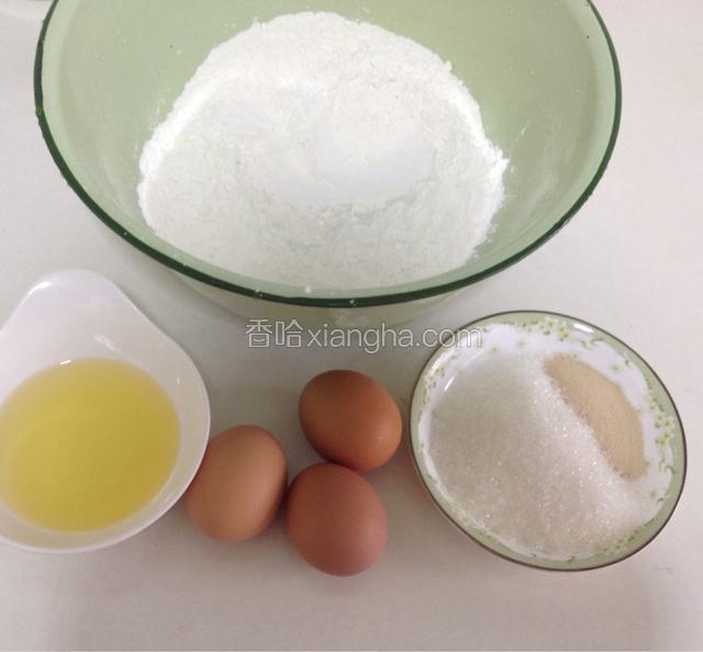 2.面粉内倒入白糖和酵母拌匀