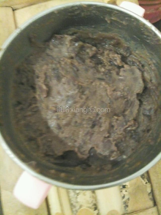 5.南瓜糊放凉后,慢慢加入糯米粉,一点一点的加。