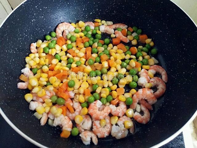6.小锅烧开水先放入青豆,胡萝卜玉米焯熟