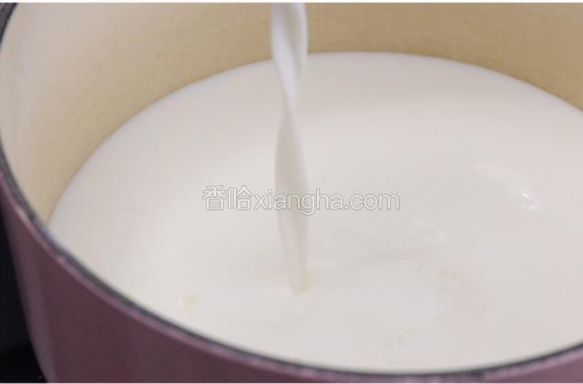 3.将奶浆过筛倒入杯中,去掉泡沫