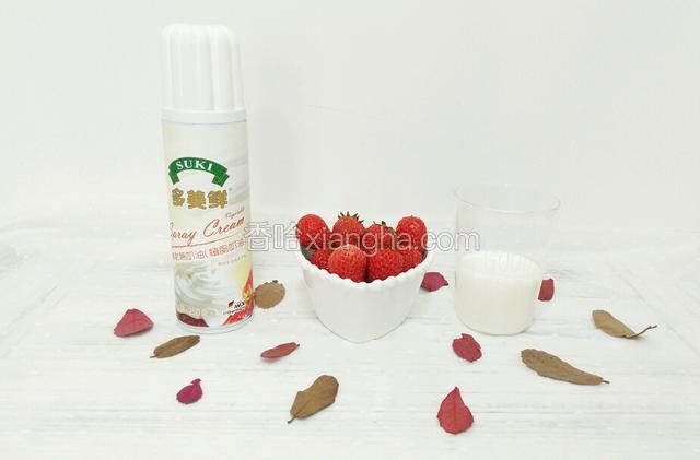 4.草莓洗净,牛奶30ml备用。