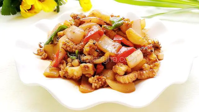 1.鱿鱼用剪刀从中间剪开,除去眼睛和嘴巴。