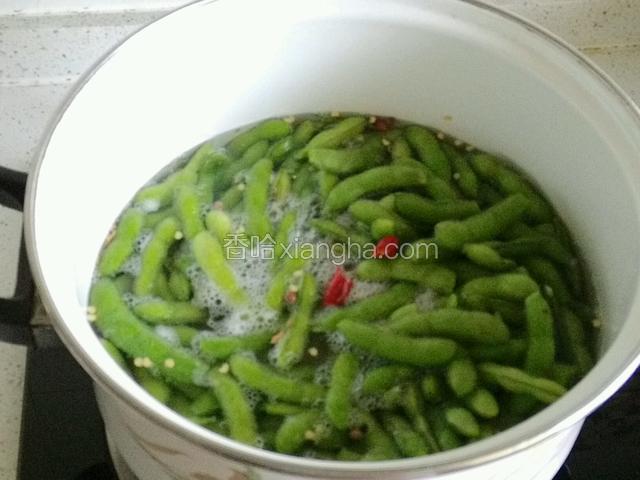 3.大火10分钟,毛豆变绿
