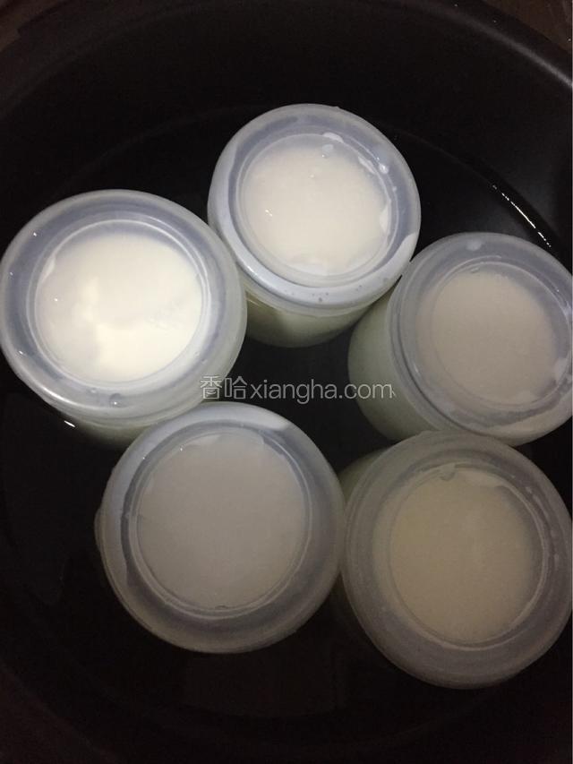 6.把搅拌均匀的奶液倒入消毒好的酸奶瓶内