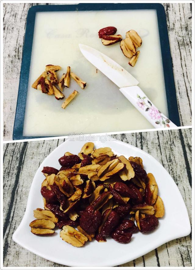 5.红枣要去核切小块,红枣核比较燥热,也不好磨酱