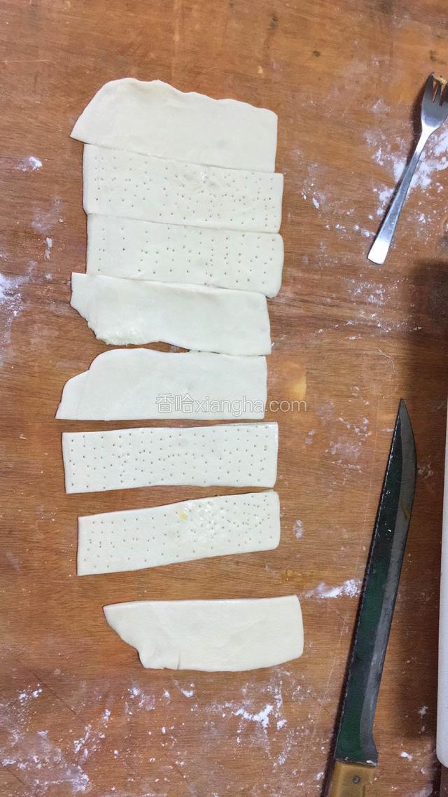 6.然后取出,打开,在按原来折好的印记折好,这次要挤压出所有的气泡,擀成酥皮,切成想用的大小,2个为一组