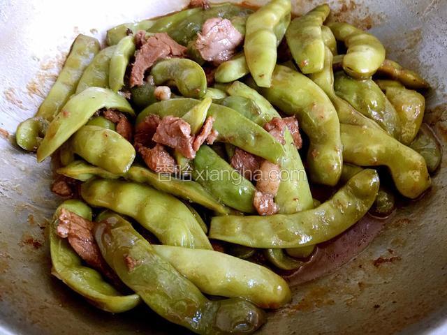 4.放入豆角翻炒几分钟,炒干豆角中的水分。