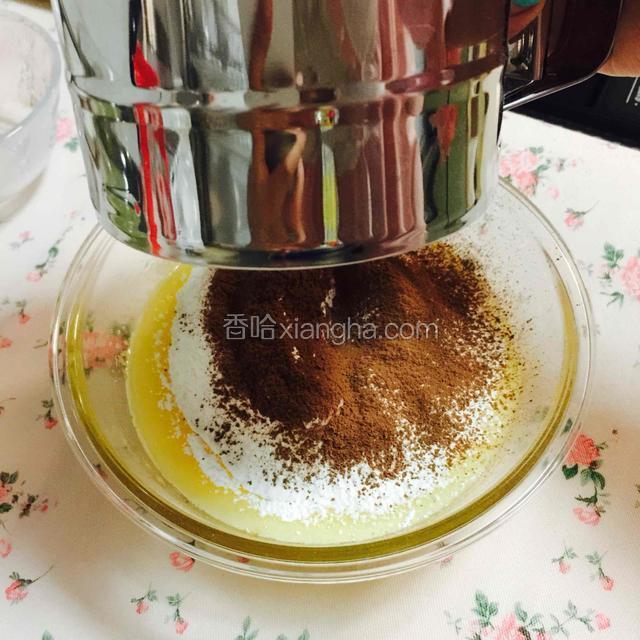 4.筛入低筋面粉、可可粉(也可以加入1-2g泡打粉)