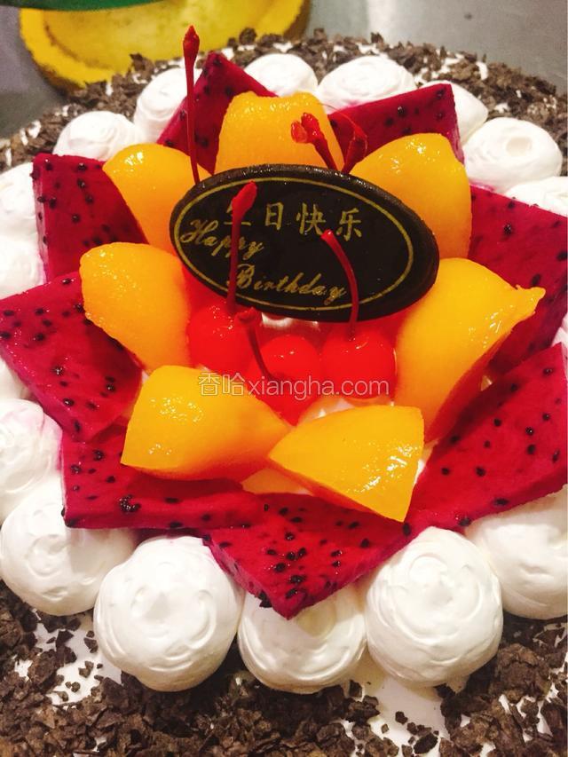 6.在外面一圈扔巧克力碎撒到奶油上粘住,如图所示