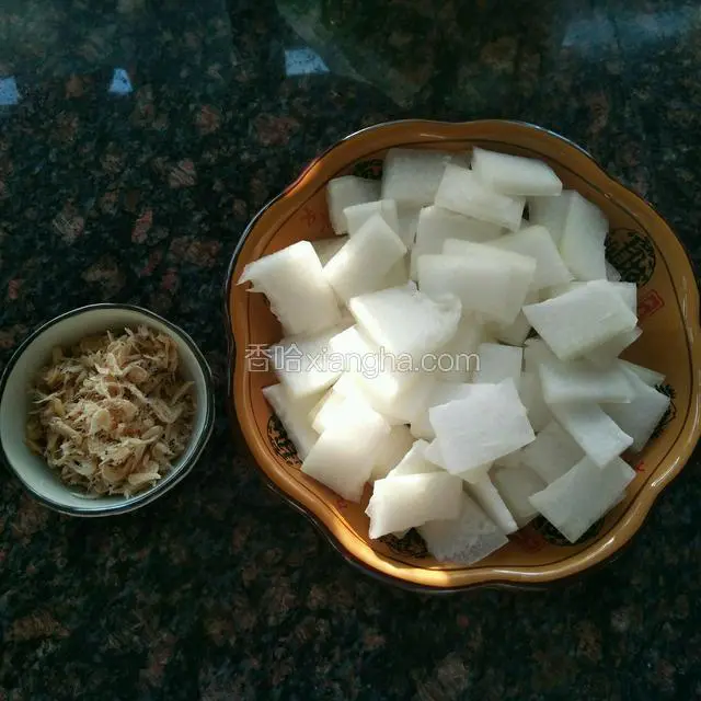 1.首先把冬瓜去皮切薄块,虾皮洗净沥干