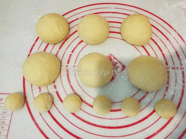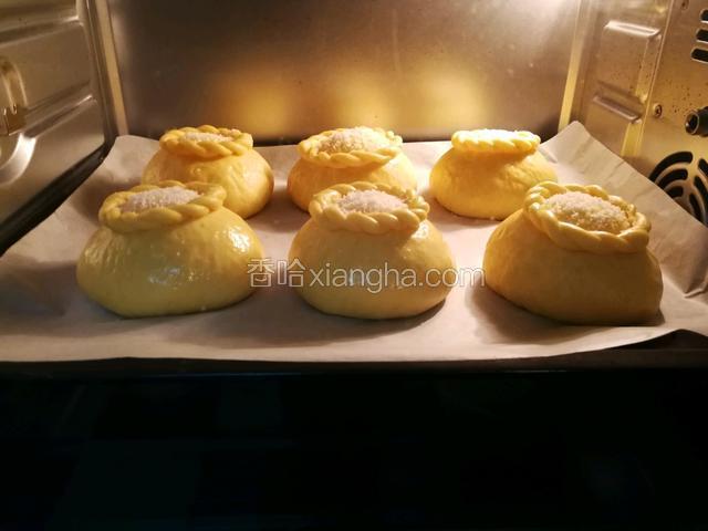 4.把面团移入碗中,盖上保鲜膜发酵至二倍大时,排气,进行二次发酵,再发酵至二倍大时,用手指蘸取少许干面粉在面团中间戳一个洞,如果面团不粘手不回缩就是发酵完成。