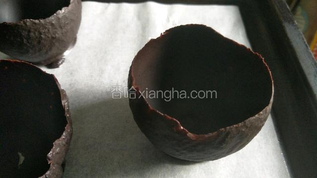 5.气球放入巧克力里滚均匀(大概巧克力覆裹住气球的一半)