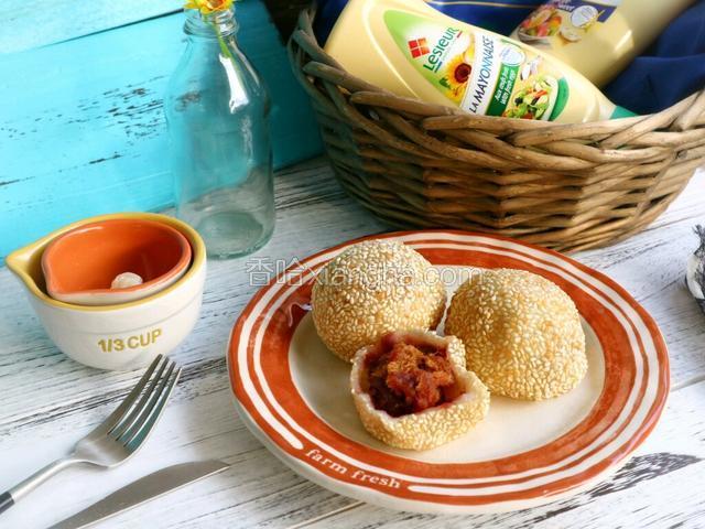 1.先来看看注意事项1:糯米粉的吸水量不同,根据实际情况增减水的克数,糯米团的必须是软硬适中的。 2:油量要没过麻团,油炸过程得开小火慢慢炸 3:麻团一次性不要放太多炸,因为油炸过程麻团会膨胀变大 4:麻团浮上来后没有漏勺,也可以用筷子不停地翻转麻团直到炸熟