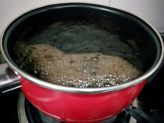 6.加入24克烧仙草,20克白糖搅拌均匀(边倒边搅拌)