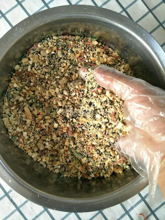 6.找一个无水的盆子,把所有的食材,放一起,搅拌