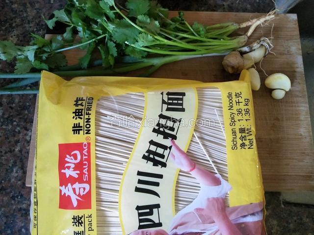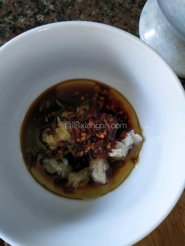6.趁煮面条的时间调料汁,把除葱和香菜以外的调料加入碗里调成料汁