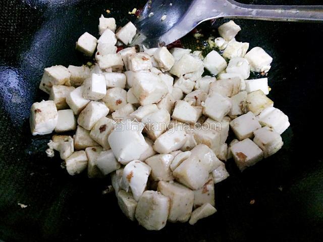 1.准备食材:豆腐和黄瓜切丁,红线椒和葱,干红椒切圈,生姜切末,料汁调好,花生米洗净备用