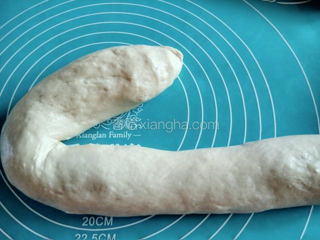 6.将面团放置硅胶垫上,开始揉面。要充分揉搓,越揉越光滑越好。