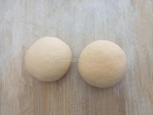 3.取100g、50g面粉,多的加入红薯泥,少的加酵母水,留10g干面粉备用