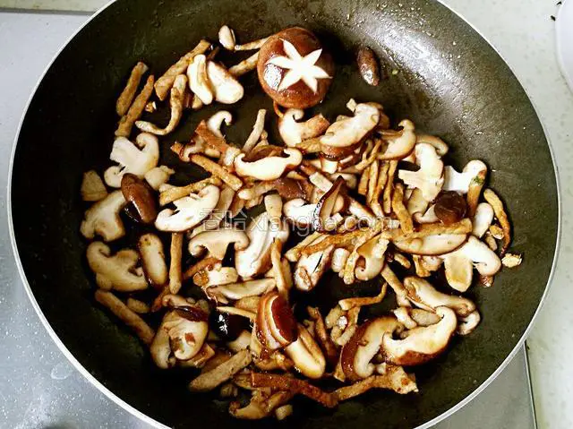 1.猪肉切丝,香菇洗净去蒂,切片