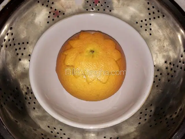 5.挖出橙肉,得到一个花瓣橙皮碗