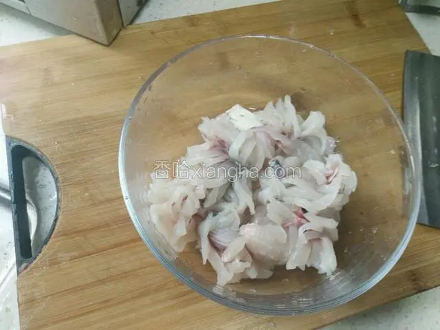 1.将鱼去除头尾,去除鱼骨,去掉鱼腹,修平鱼肉。