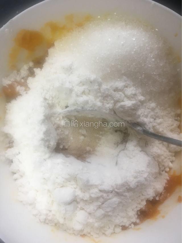 2.南瓜去皮去瓤切小块,上锅蒸熟,再用汤匙压成泥