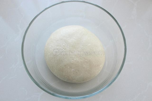 3.把面团整理好放进容器中,覆盖保鲜膜放温暖处发酵