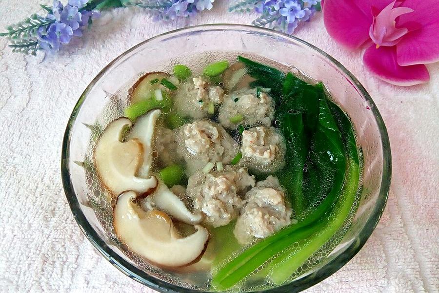 香菇、豆腐、瘦肉、花蛤、猪肚菇、葱