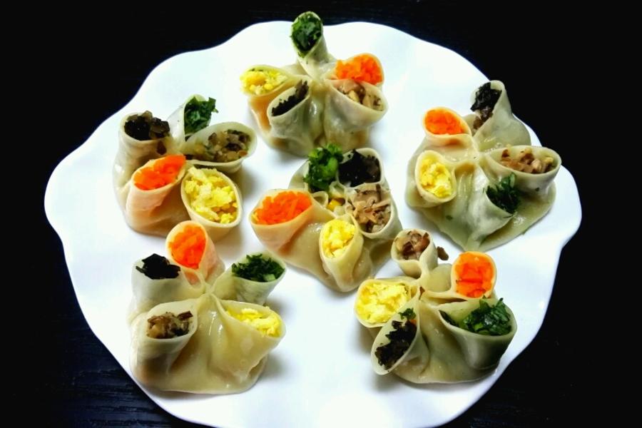 鸡蛋、青椒、饺子皮、紫薯、红椒、葱、七分瘦三分肥的肉馅