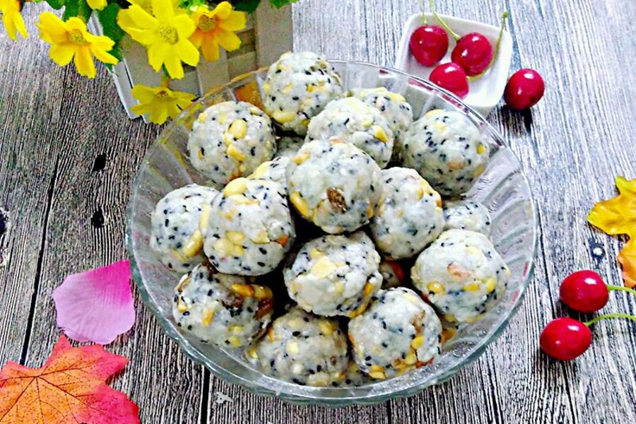 花生、杏仁、瘦肉、白芝麻、核桃仁、熟糯米粉、瓜子、姜、蒜、葡萄干、料酒、蜂蜜、黑芝麻、生抽酱油、冬瓜糖、白沙糖、老抽酱油、和馅料的食用油、和馅料的水