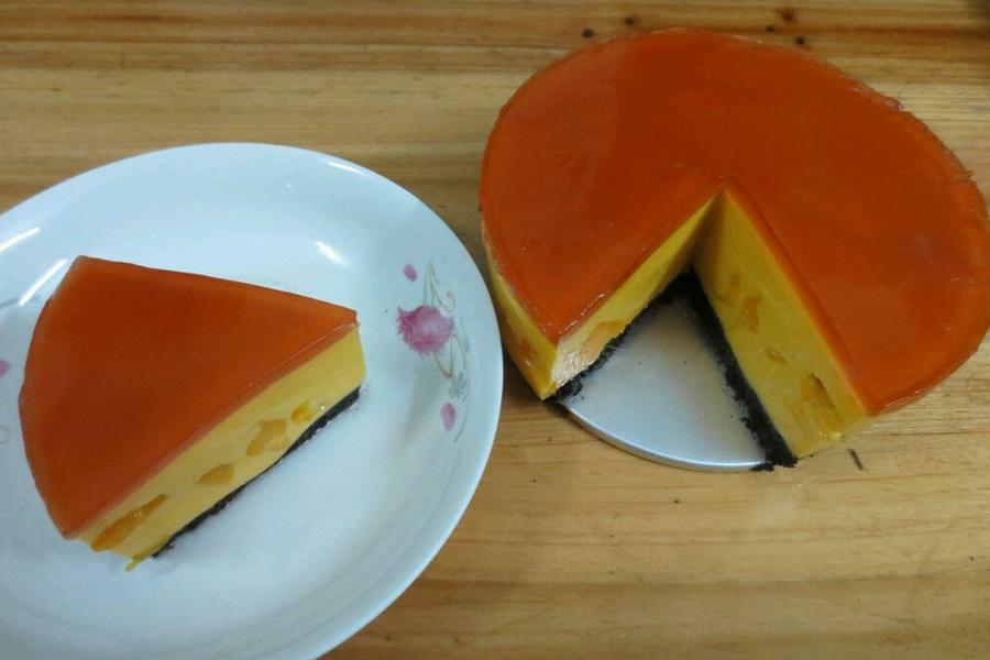 消化饼干、黄油、慕斯:芒果、慕斯:淡奶油、慕斯:白砂糖、慕斯:吉利丁、慕斯:酸奶、慕斯:芒果丁、镜面:吉利丁、镜面:芒果泥、镜面:水