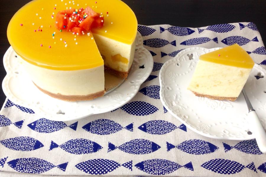 芒果、酸奶、吉利丁、糖、淡奶油、奶油奶酪、黄油(蛋糕底)、可可粉(装饰用)、防潮糖粉(装饰用)、奥利奥饼干(蛋糕底)