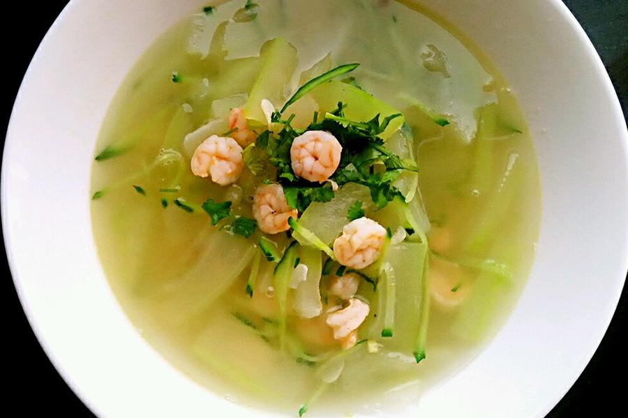 鸡蛋、冬瓜、鲜虾、葱、姜