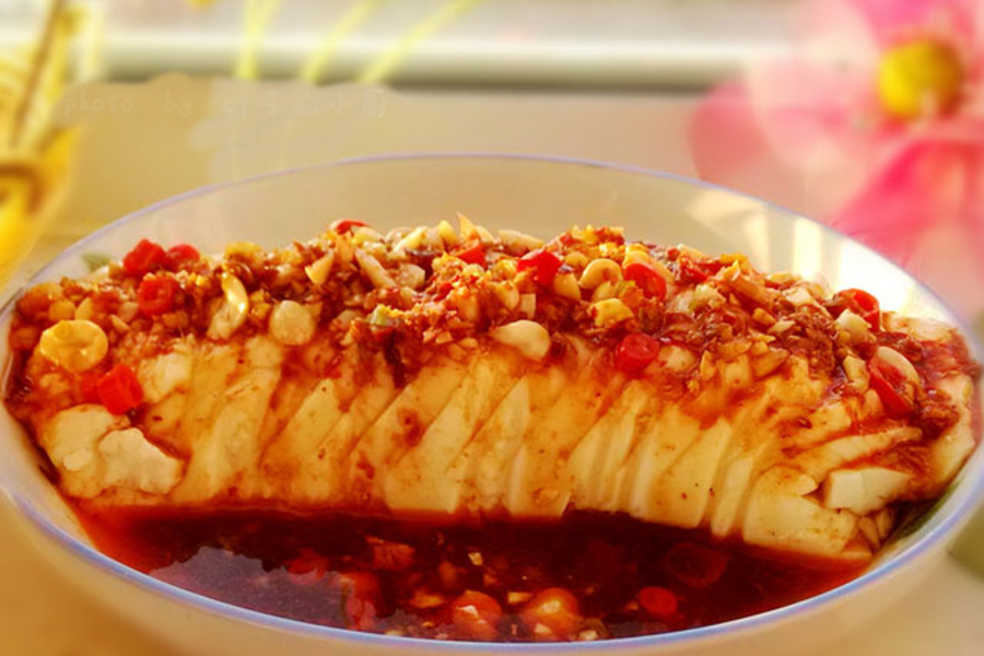 葱姜蒜末、内酯豆腐、泡椒、炸花生米、碎辣椒