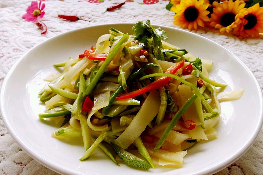 香菜、水、面、青红椒、米椒、醋、盐、糖、香油、淀粉、海鲜酱油、鸡粉、麻椒油