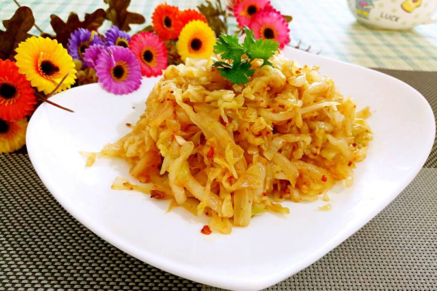 卷心菜、蒜、盐、辣椒油、蒸鱼豉油