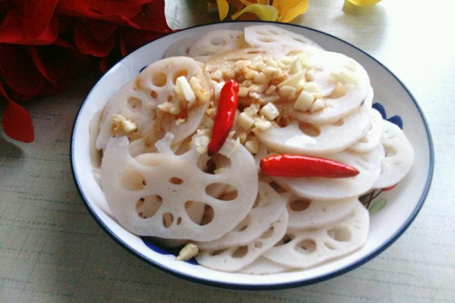 莲藕、红椒、葱、蒜、生抽、芝麻油、白醋、陈醋