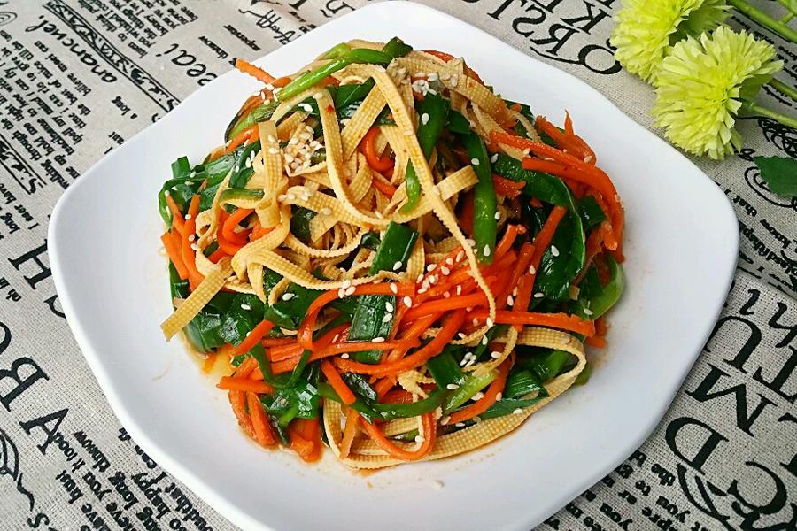 芹菜、香菜、胡萝卜、青瓜、蒜头、小辣椒、豆腐皮