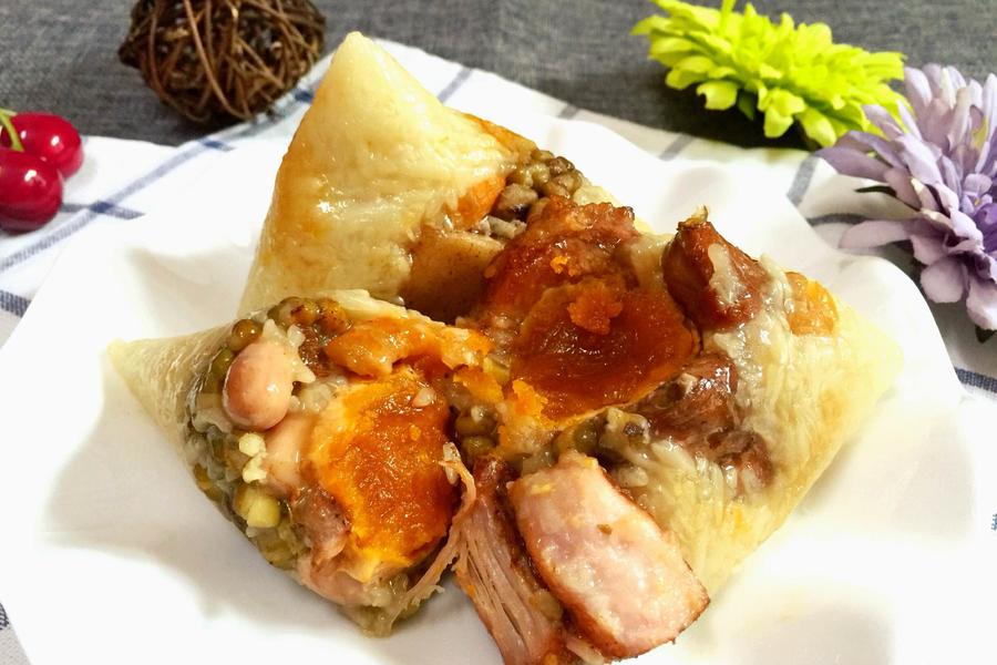 五花肉、火腿、花生、糯米、干香菇、粽叶