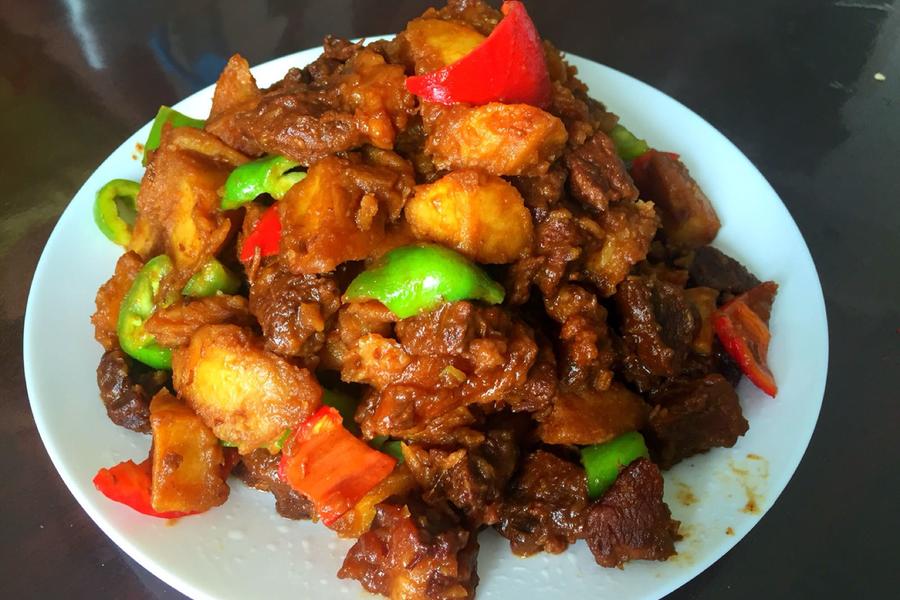 胡萝卜、青椒、红辣椒、牛腱子肉、大蒜、淀粉