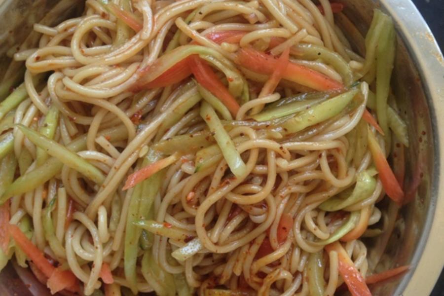 绿豆芽、黄瓜、新鲜切面(细棍)
